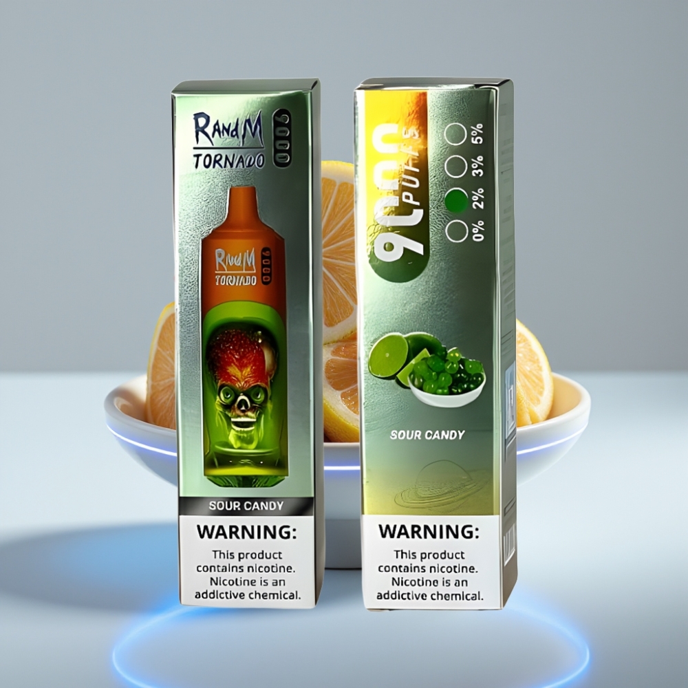RandM Tornado 9000 Puffs 850 мАч 18 мл Mesh Coil RGB Дисплей Кислая Конфета